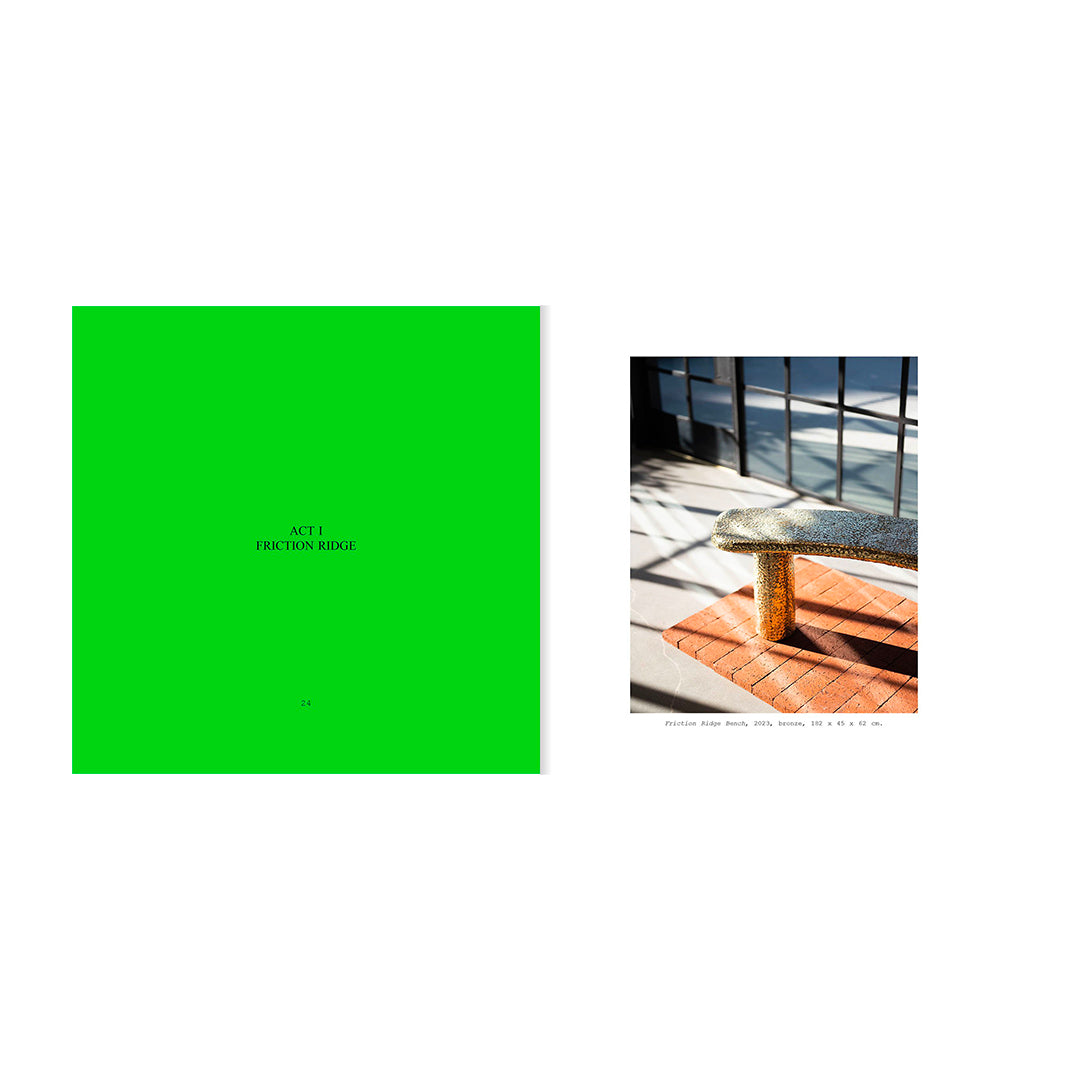 Oríkì: Material Affirmations in Three Acts is the debut monograph of Nigerian artist Nifemi Marcus-Bello, spanning his three-part sculptural Oríkì series, including Act I: Friction Ridge, Act II: Tales by Moonlight, and Act III: Whispers of a Trail, exploring bronze, aluminium, and copper, respectively. The book includes a foreword by Eames Demetrios and essays by Irene Sunwoo, Glenn Adamson, andRita Ouédraogo, as well as an exclusive interview with Camille Okhio. Named Oríkì after the Yoruba practice of praise poetry, the volume includes Nifemi’s own personal oríkì, composed by his mother, Folake Marcus-Bello, as well as a personal essay tracing his artistic development from childhood through the present