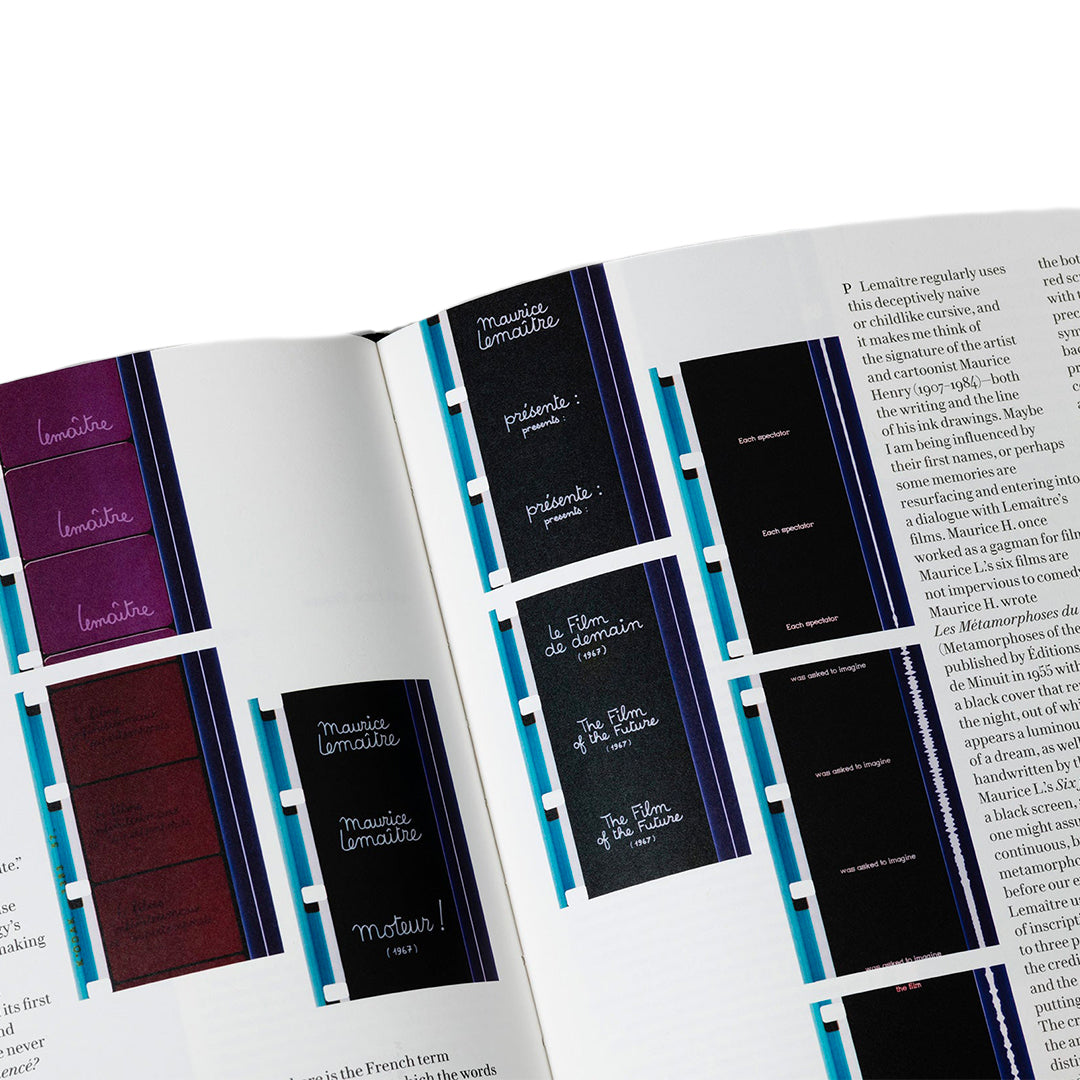 From credits to subtitles to title cards and beyond, texts play a critical role in cinema. Yet, away from the world of mainstream film, these textual—and visual—elements have often been overlooked. In Read Frame Type Film: Or, Written on the Screen, film curator Enrico Camporesi, graphic design historian Catherine de Smet, and designer Philippe Millot discuss 24 handpicked experimental and artists’ films from the collection at the Centre Pompidou in which visionaries like Marcel Duchamp, László Moholy-Nagy, Michael Snow, Maurice Lemaître, and Yvonne Rainer open up the possibilities for creative interplay between typography and the moving image. Gathering especially commissioned photography of filmstrips from the collection, with essays by Pierre Alferi and Robin Kinross, the book is a uniquely experimental object, in which text and images mirror one another.